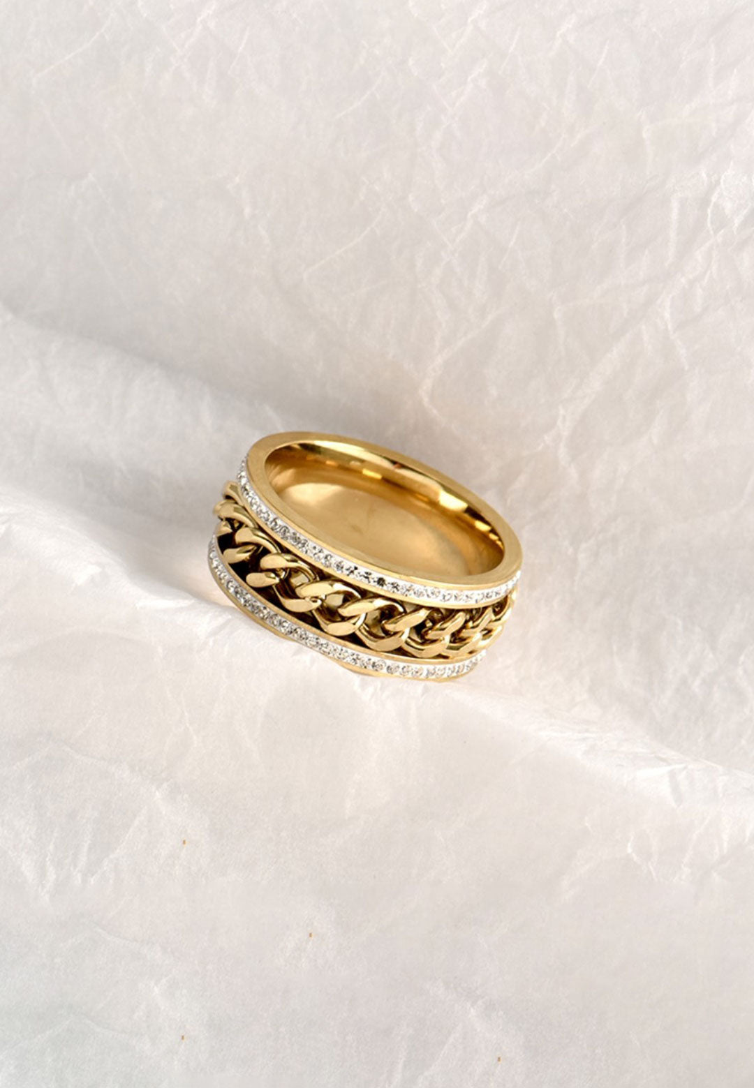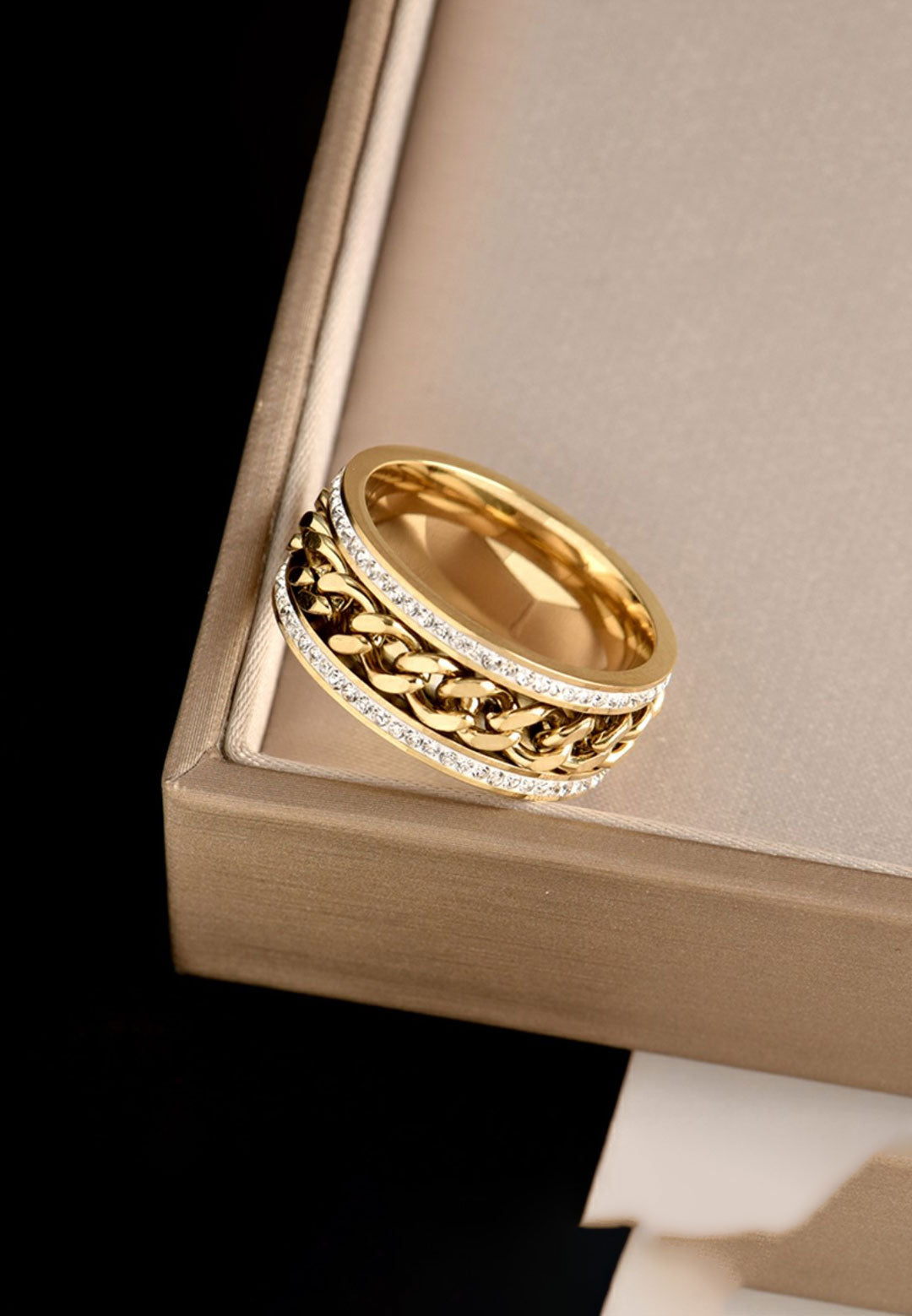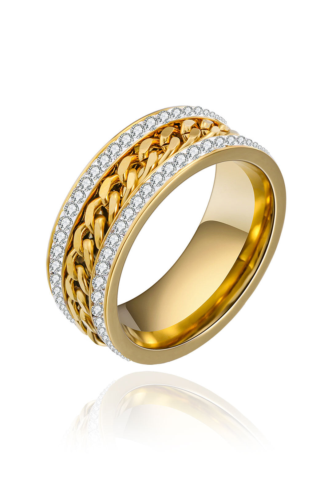 리갈 큐빅 지르코니아 인셋 이터널 와이드 밴드 반지 (골드)